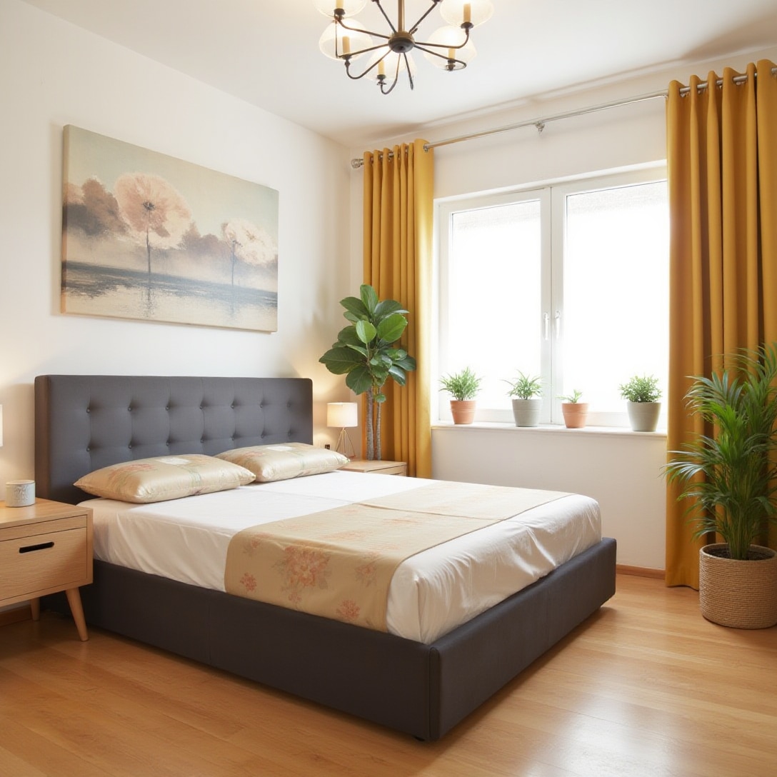The Karl Mosen upholstered bed 160×200 cm with folding bed base, storage box and mattress – mustard color gives the bedroom an aristocratic touch of elegance, style and practicality. The bed has a modern design , created by our experts according to the latest trends in interior design. Finished with care and attention to detail, the bed offers practical, generous and easily accessible storage space . Because our bedroom is more than just a place to sleep, the Karl Mosen double bed is very comfortable and spacious .