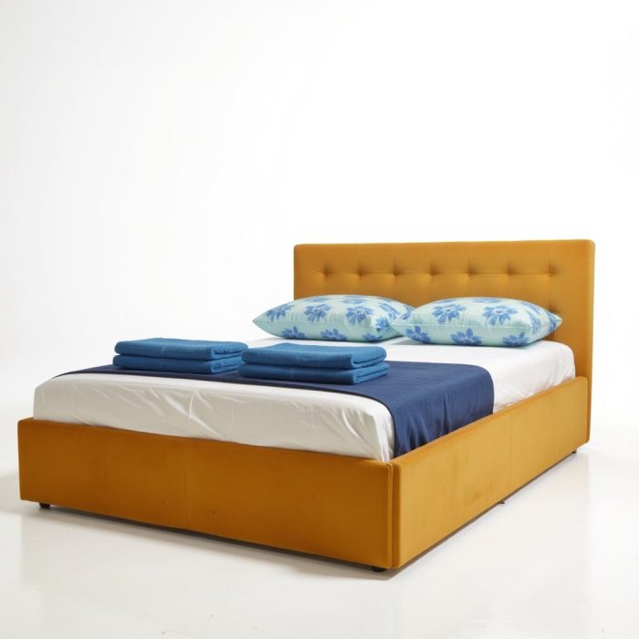 The Karl Mosen upholstered bed 160×200 cm with folding bed base, storage box and mattress – mustard color gives the bedroom an aristocratic touch of elegance, style and practicality. The bed has a modern design , created by our experts according to the latest trends in interior design. Finished with care and attention to detail, the bed offers  practical, generous and easily accessible storage space . Because our bedroom is more than just a place to sleep, the Karl Mosen double bed is very comfortable and spacious .