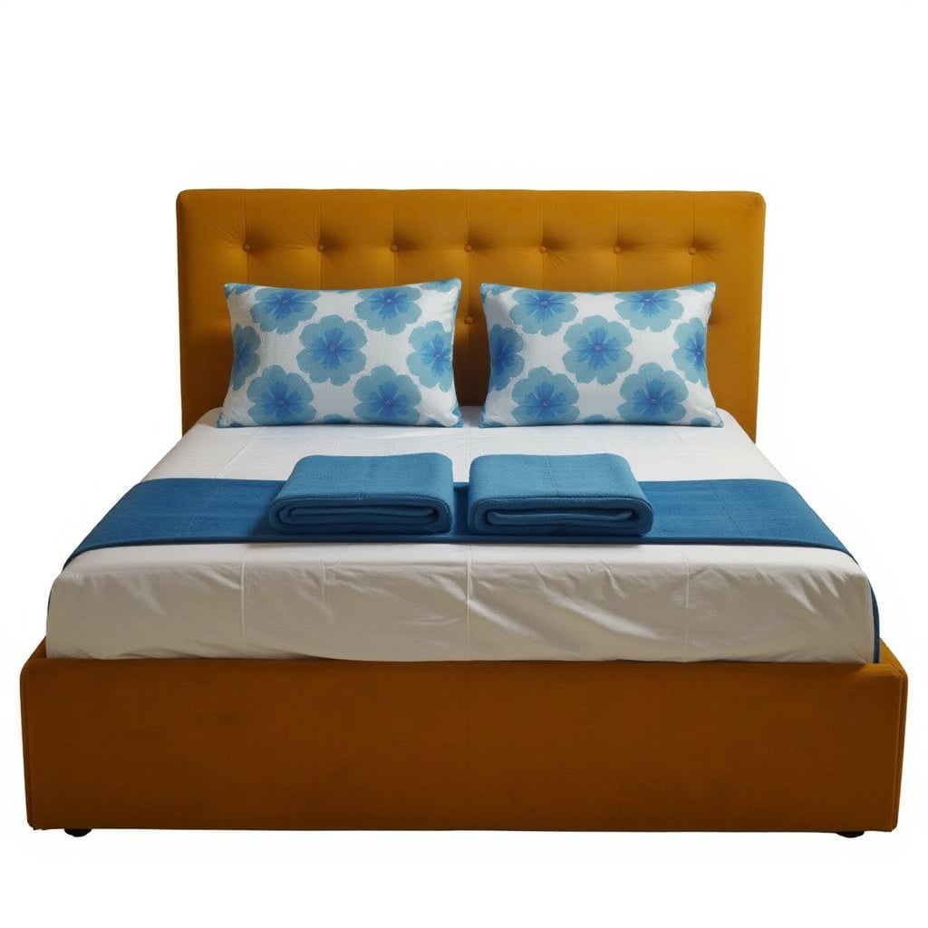 Why buy a Karl Mosen Upholstered Bed 160×200 cm with Folding Bed Base, Storage Box and Mattress – Mustard Color