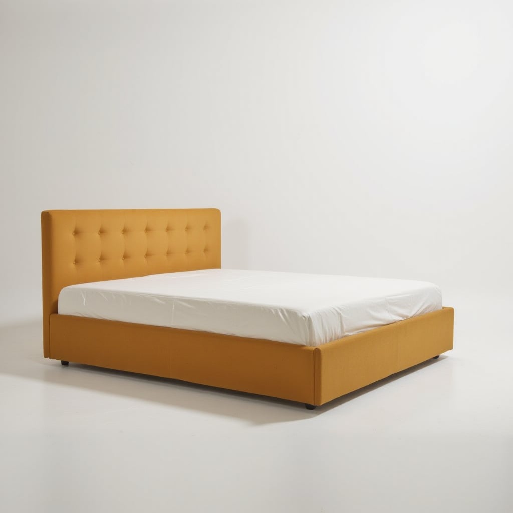 Transform your bedroom into an oasis of relaxation and escape from everyday worries with this wonderful Karl Mosen Upholstered Bed 160×200 cm with folding bed base, storage box and mattress – mustard color.