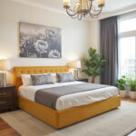 Mustard is the color of nobility and bohemian spirits. The color conveys a note of abundance while giving the bedroom an atmosphere of warmth and comfort. It can be used in various styles, from minimalist to vintage and can be easily combined with other colors such as gray, white, cream, or gray-brown.